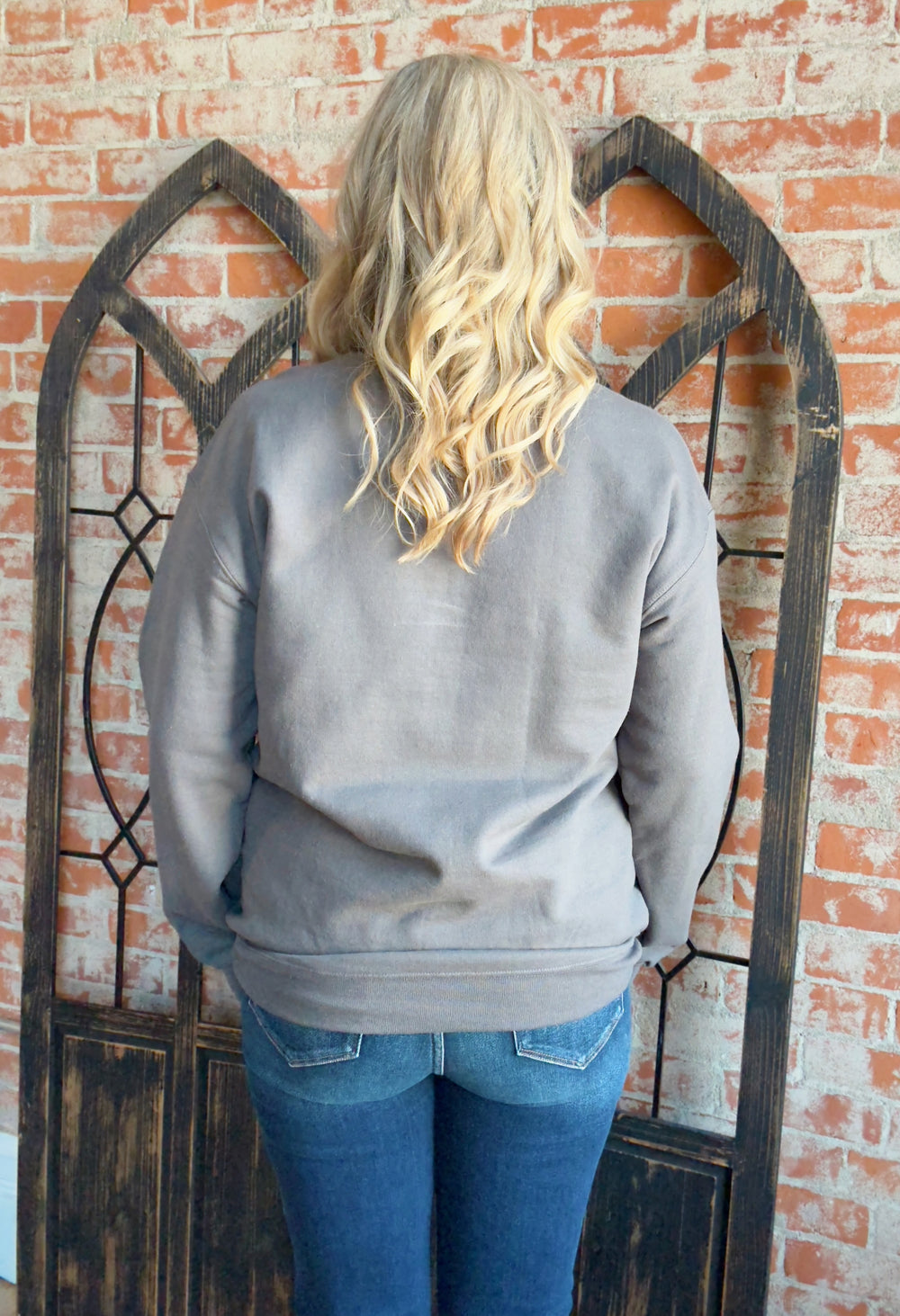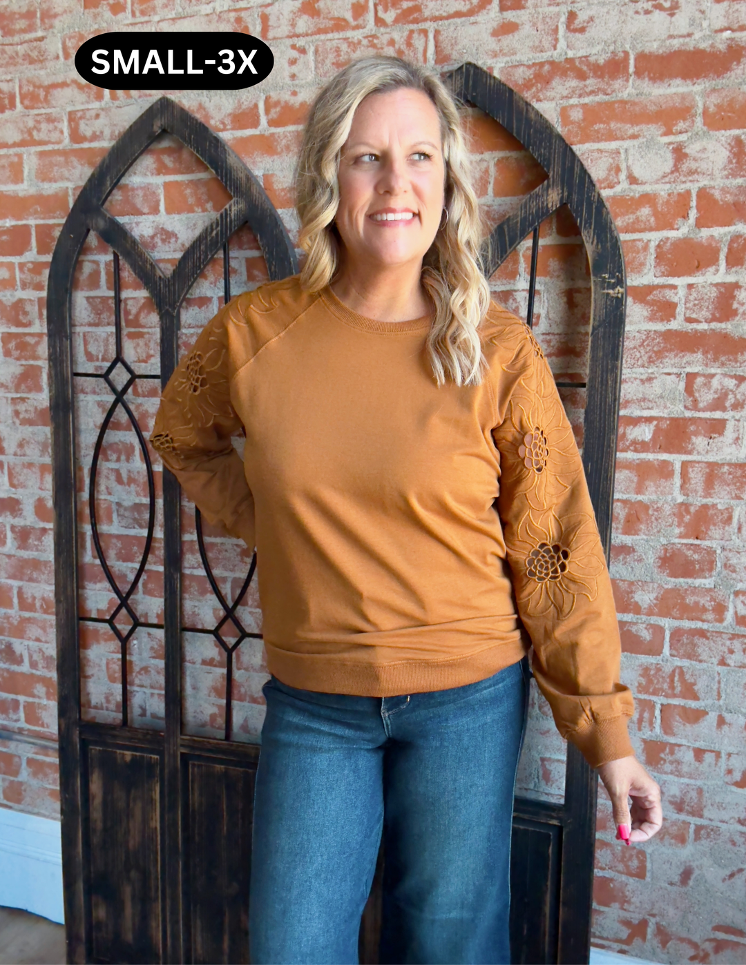 Set Me Free Laser Cut Floral Sleeve Crewneck-Camel