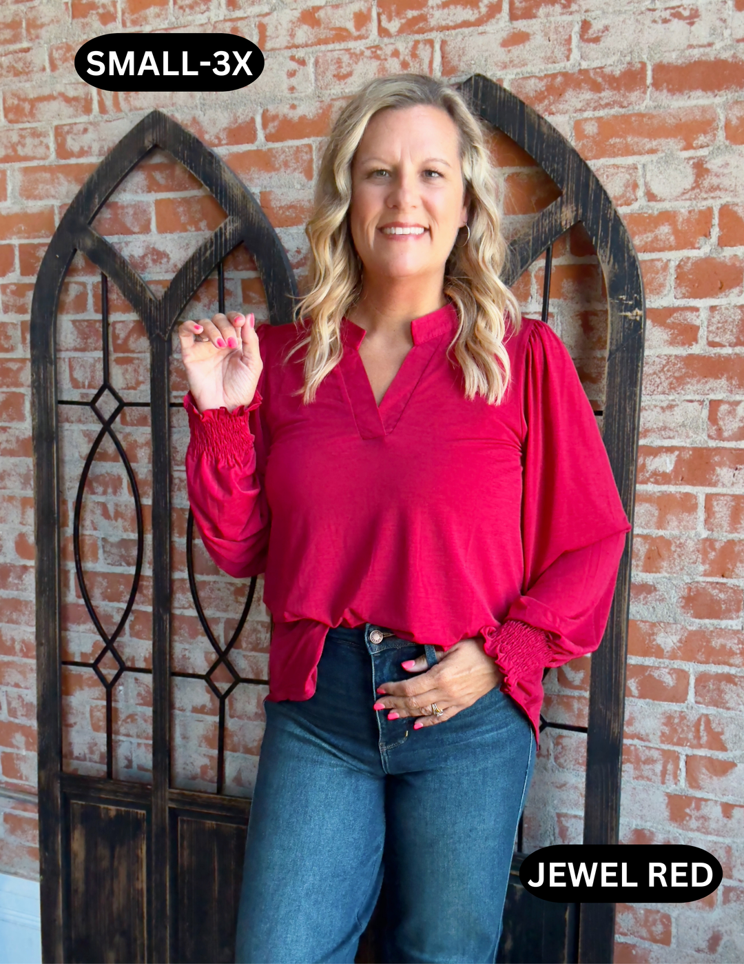 A Lot To Love Basic Smocked Sleeve Lizzy-Fall Colors