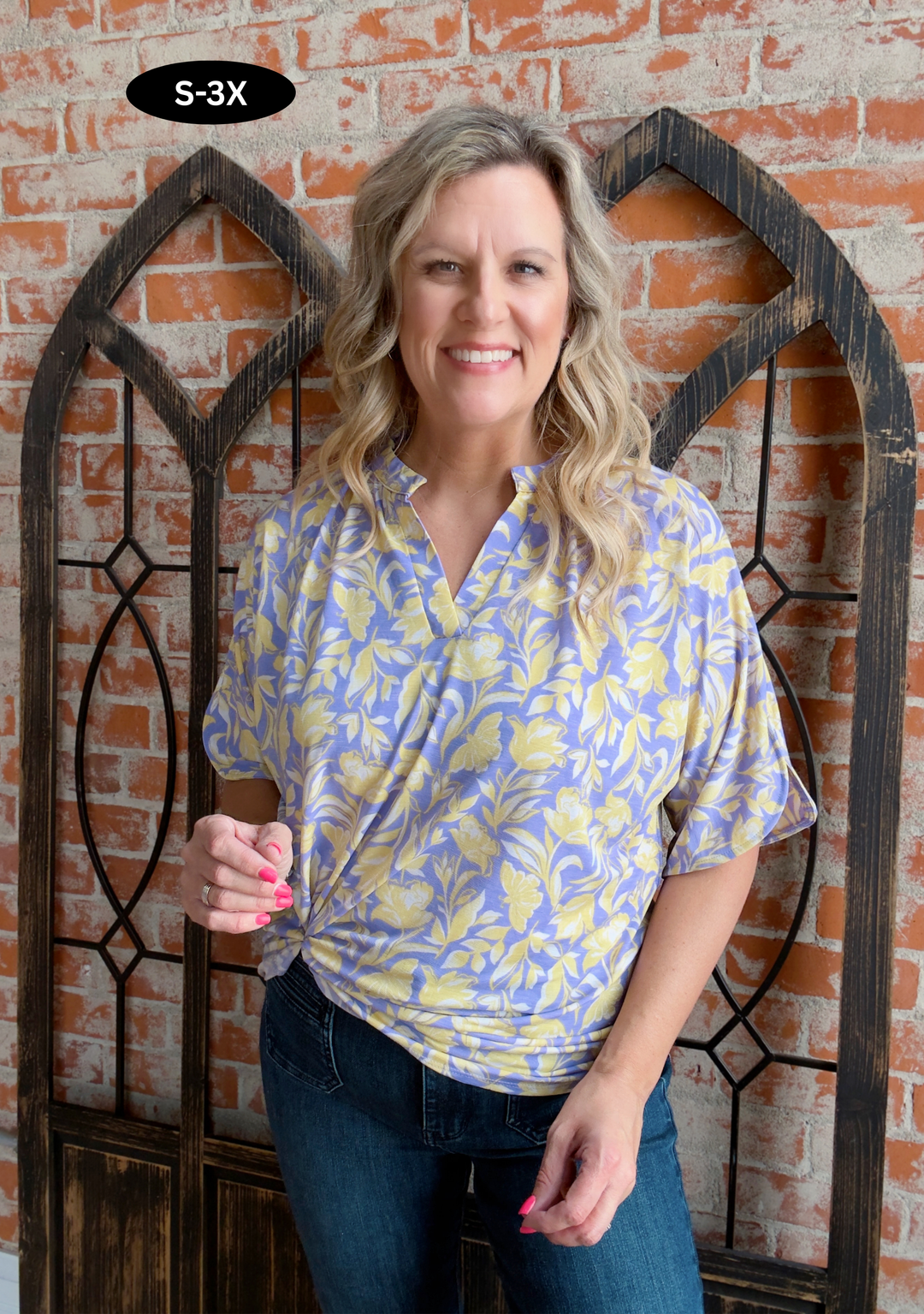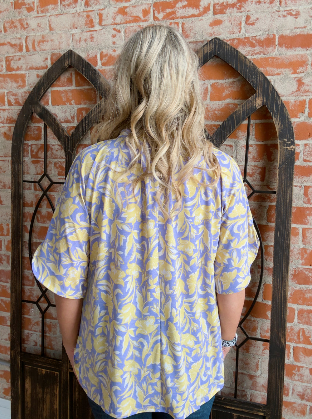 Ocean Floral Blooms Smocked Sleeve Blouse