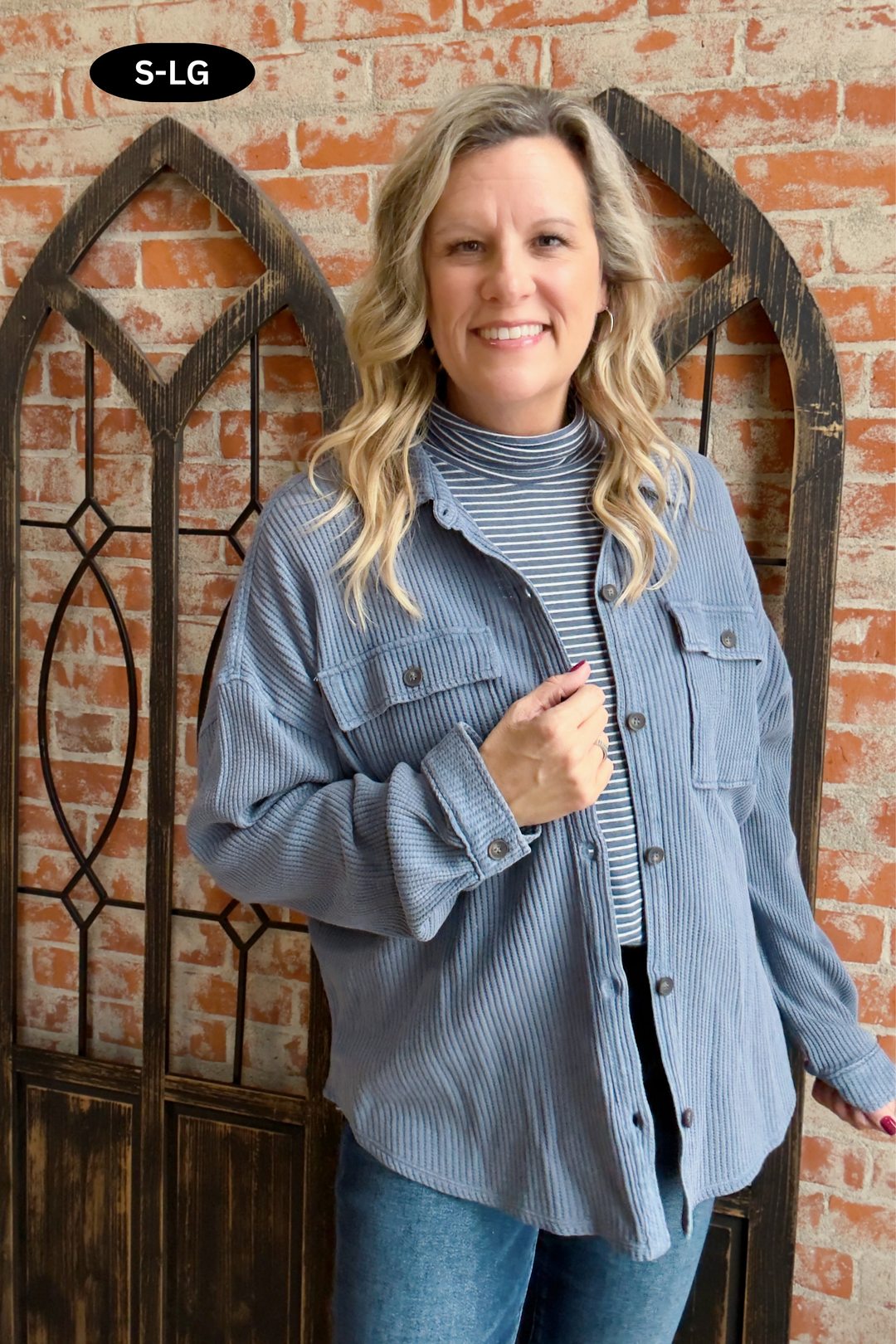 It's A Devotion Waffle Shacket-Aged Blue
