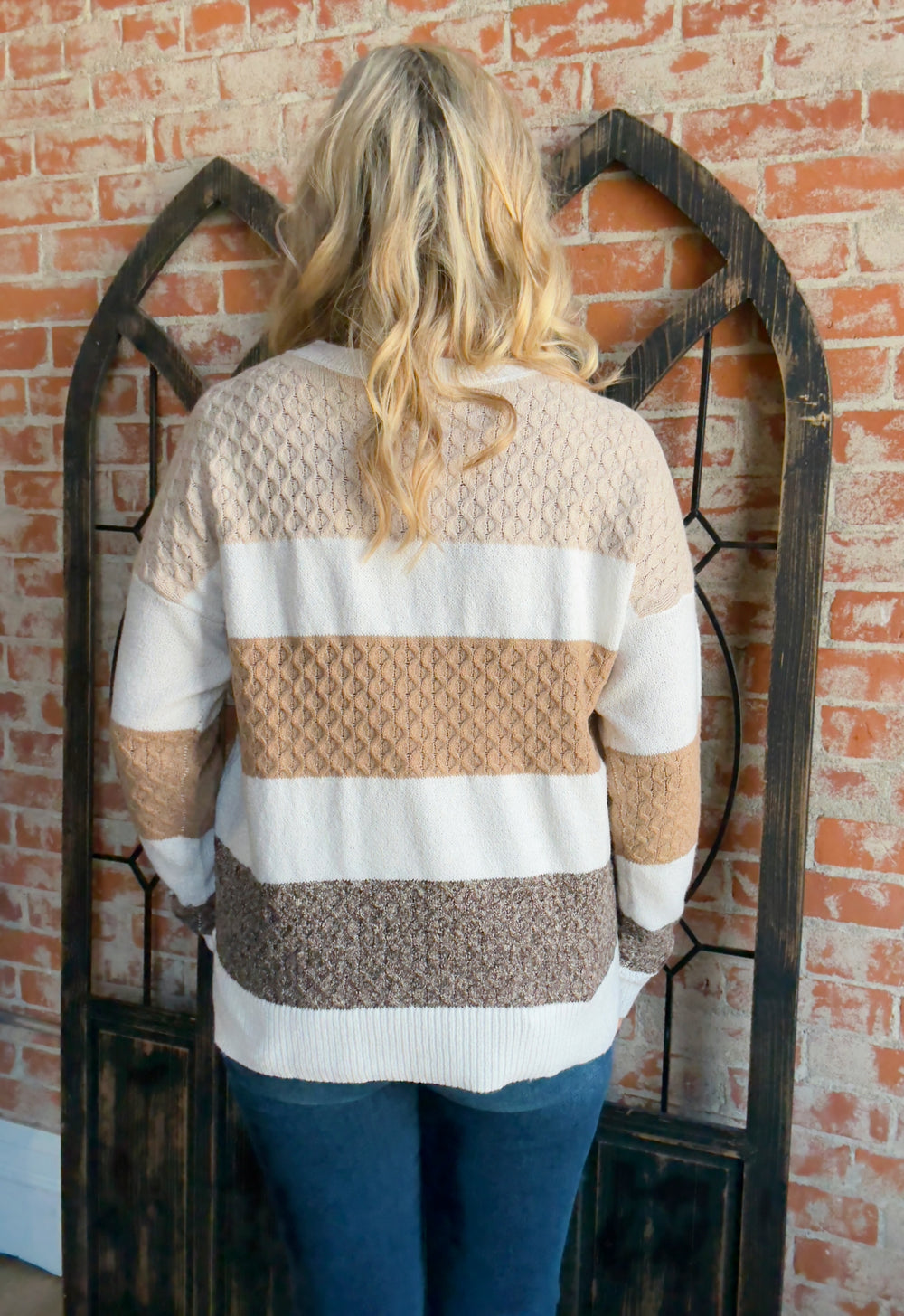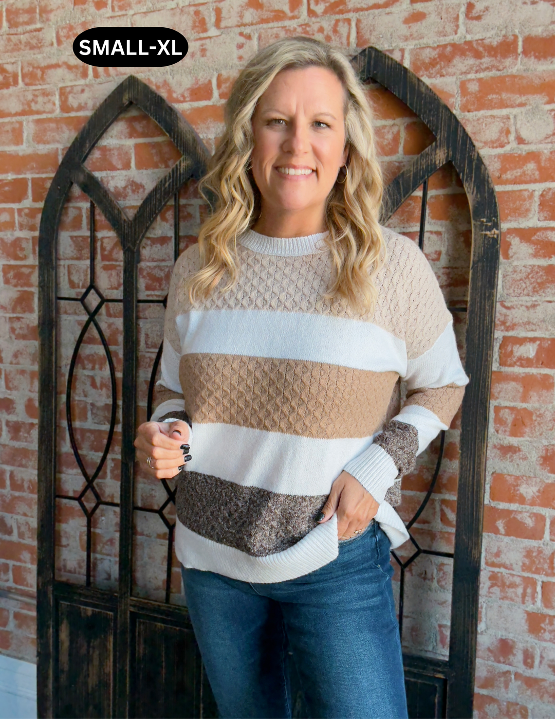 Frosted Strawberry Striped Color Block Sweater-Rose