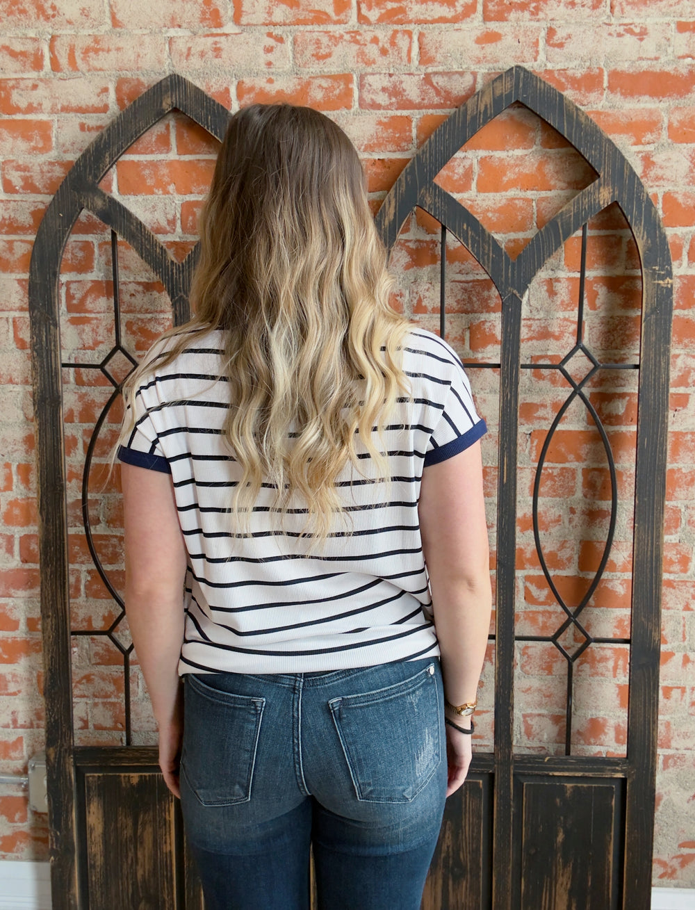 Make An Adjustment Striped Knit Blouse
