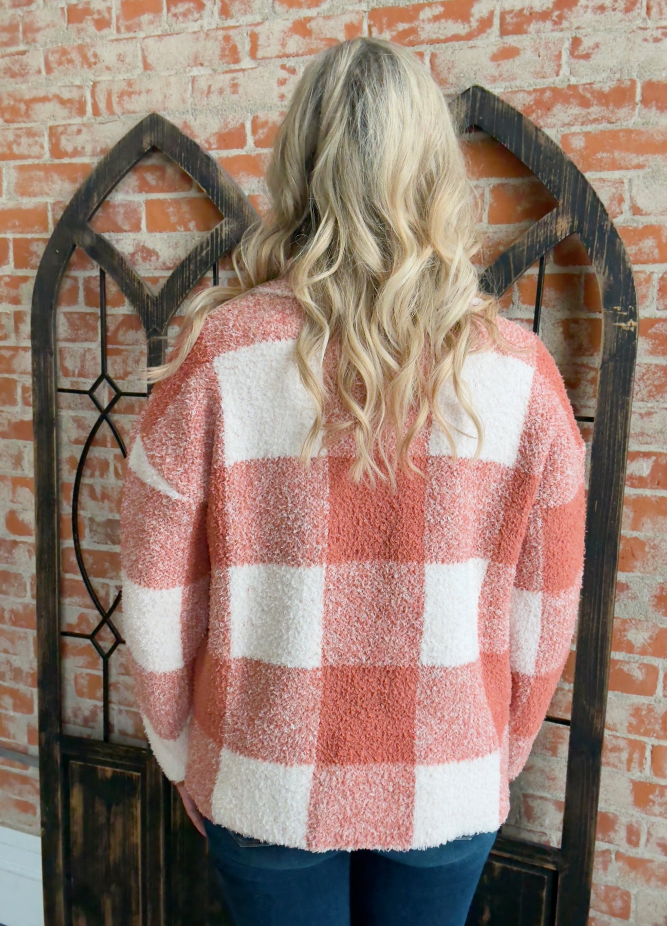 - Orange/cream plaid bodice