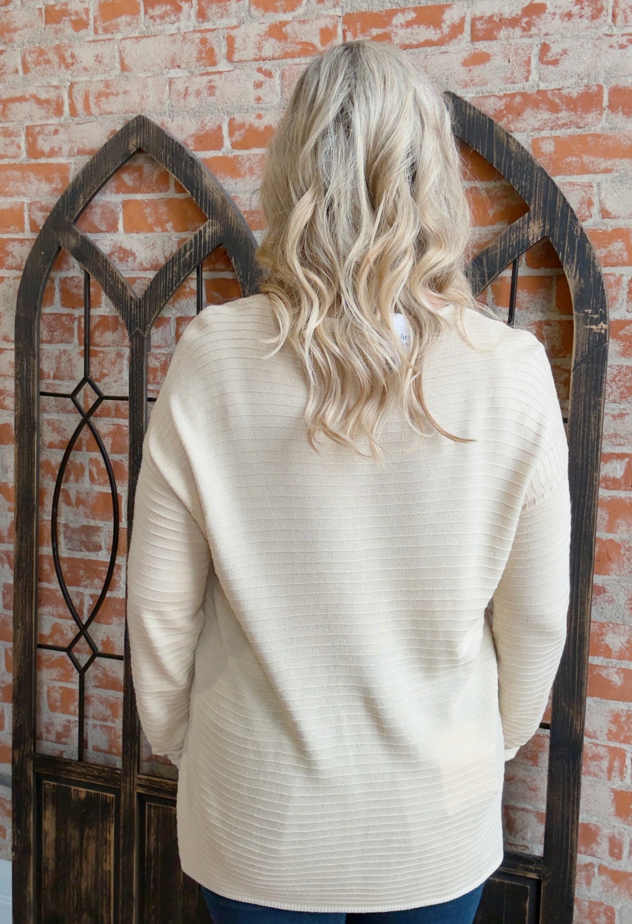 - Soft, light weight knit sweater material that contains stretch
