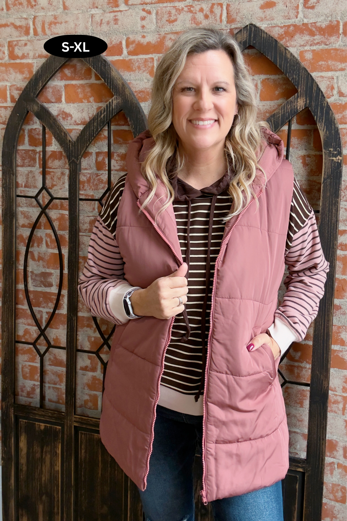 - Soft, light-medium weight puffer vest that contains limited stretch