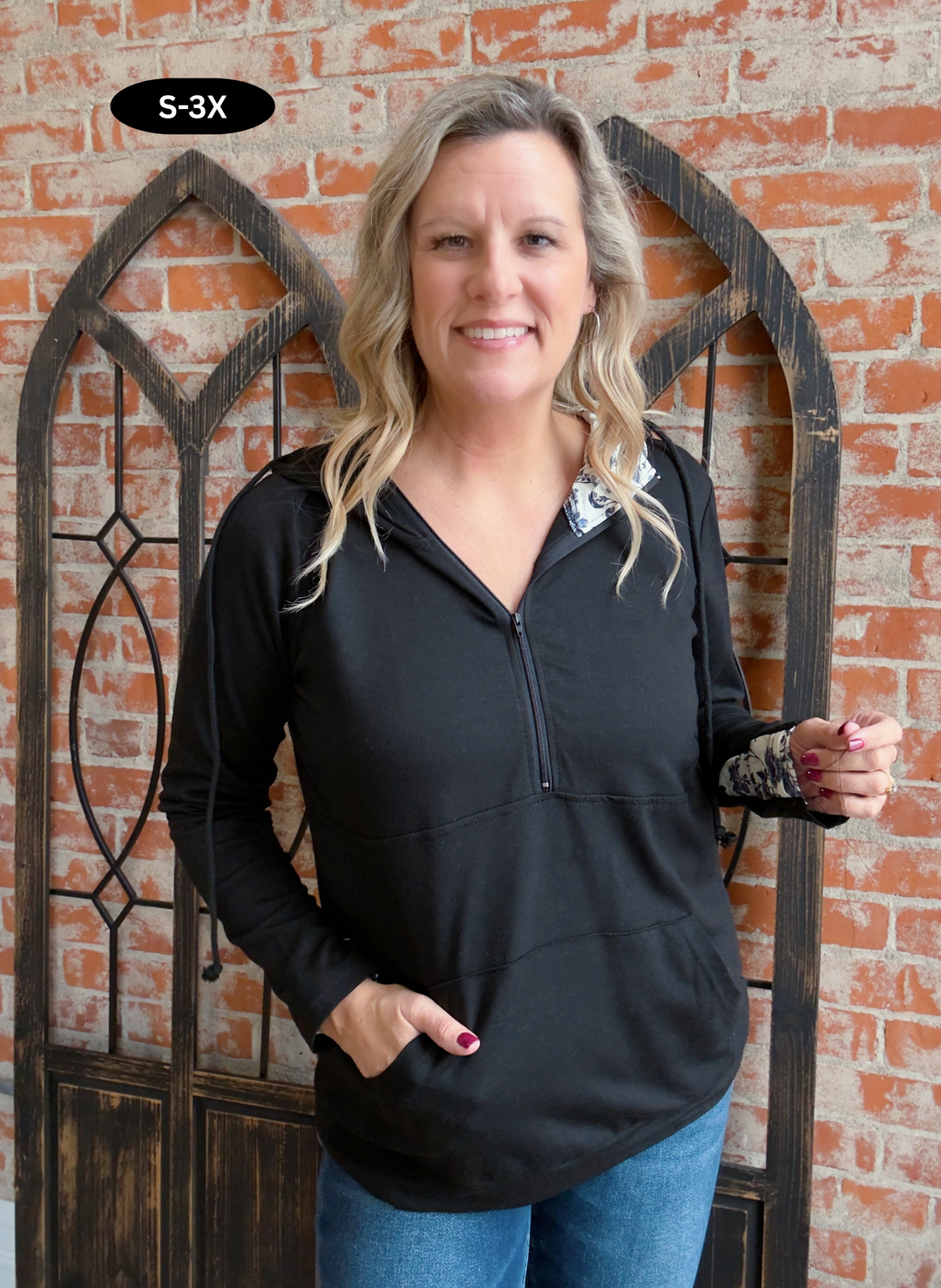 Audra Floral Lined Half Zip Hoodie