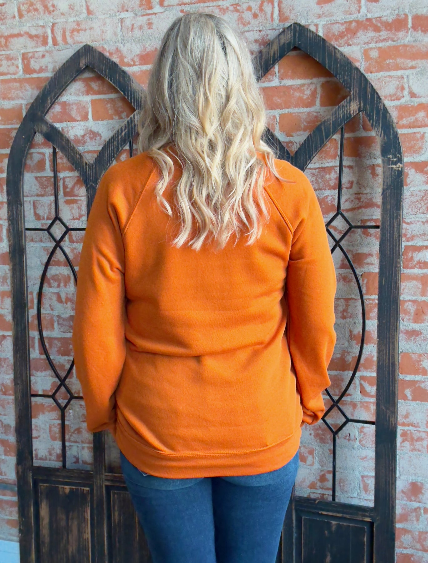 - Rust (curvy sizes are more of a darker brick in color) bodice with black "Give Thanks Always" graphics and a floral wreath decal