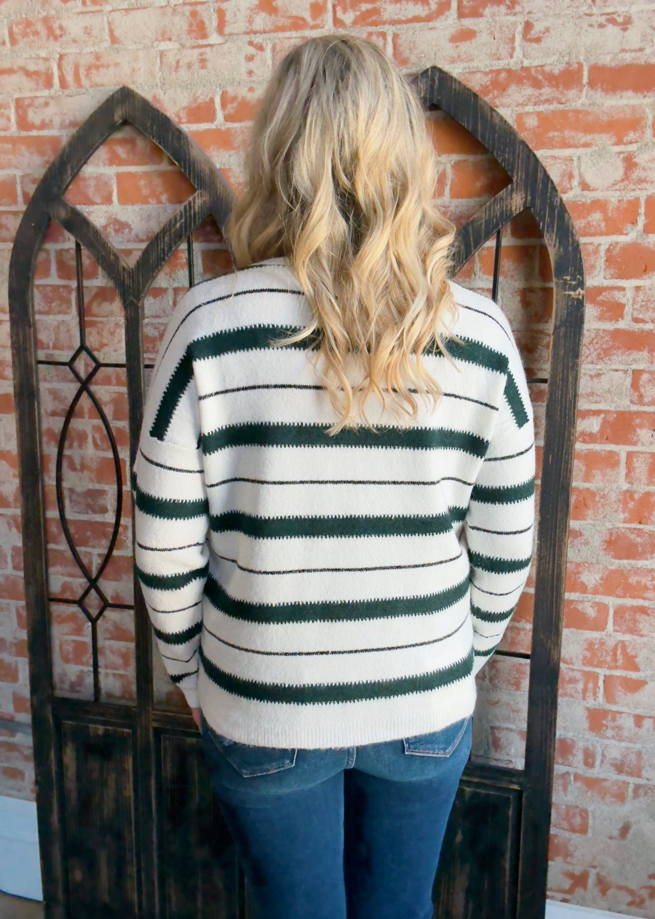 • Hunter green/ivory/black & silver shimmer striped bodice