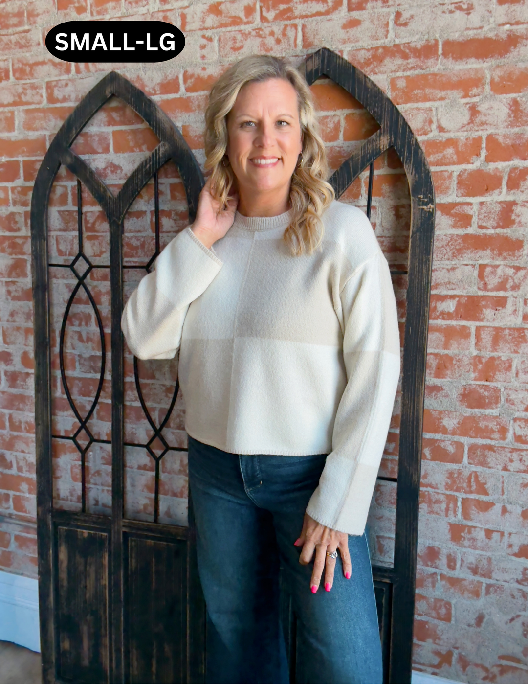 Toasted Marshmallow Checkered Sweater-Cream