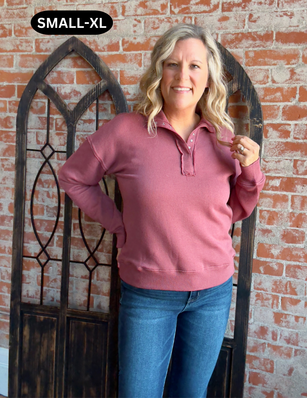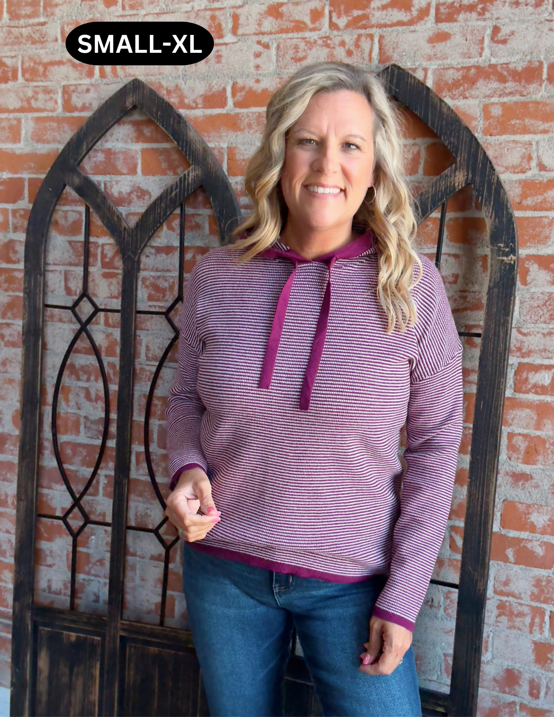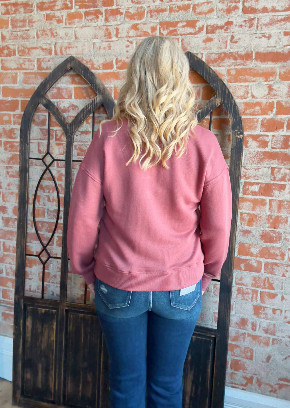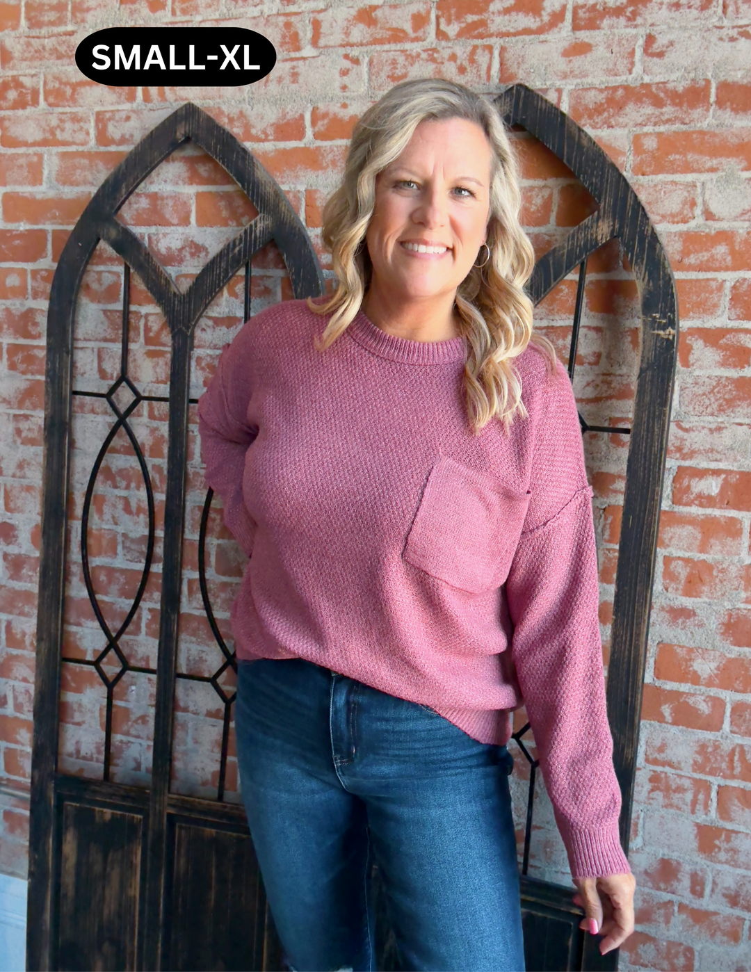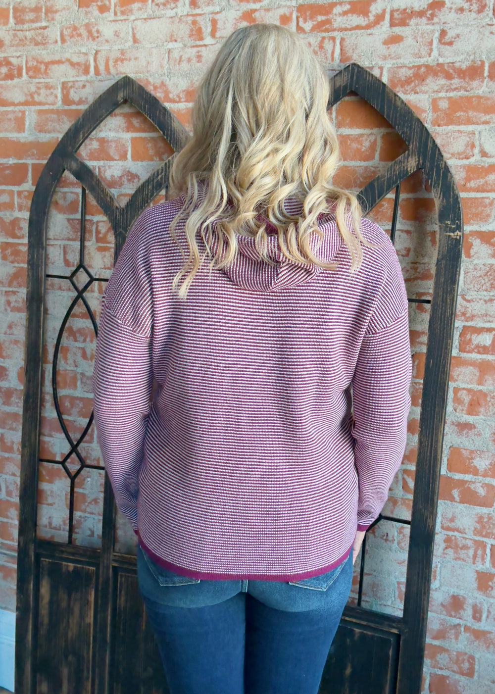 Frosted Strawberry Striped Color Block Sweater-Rose