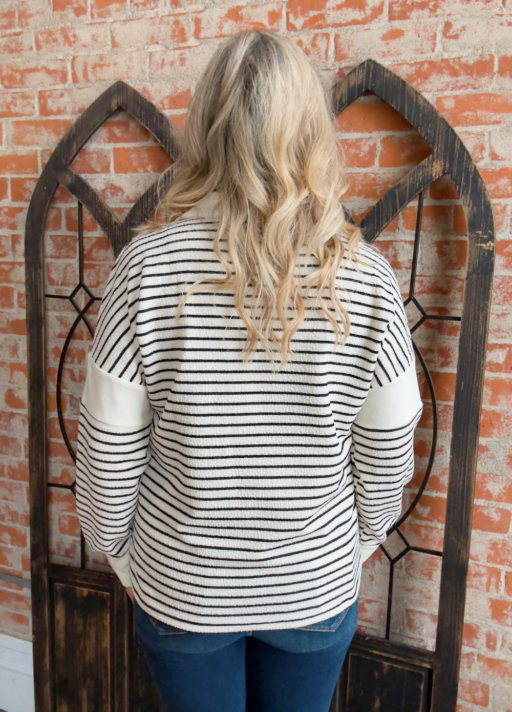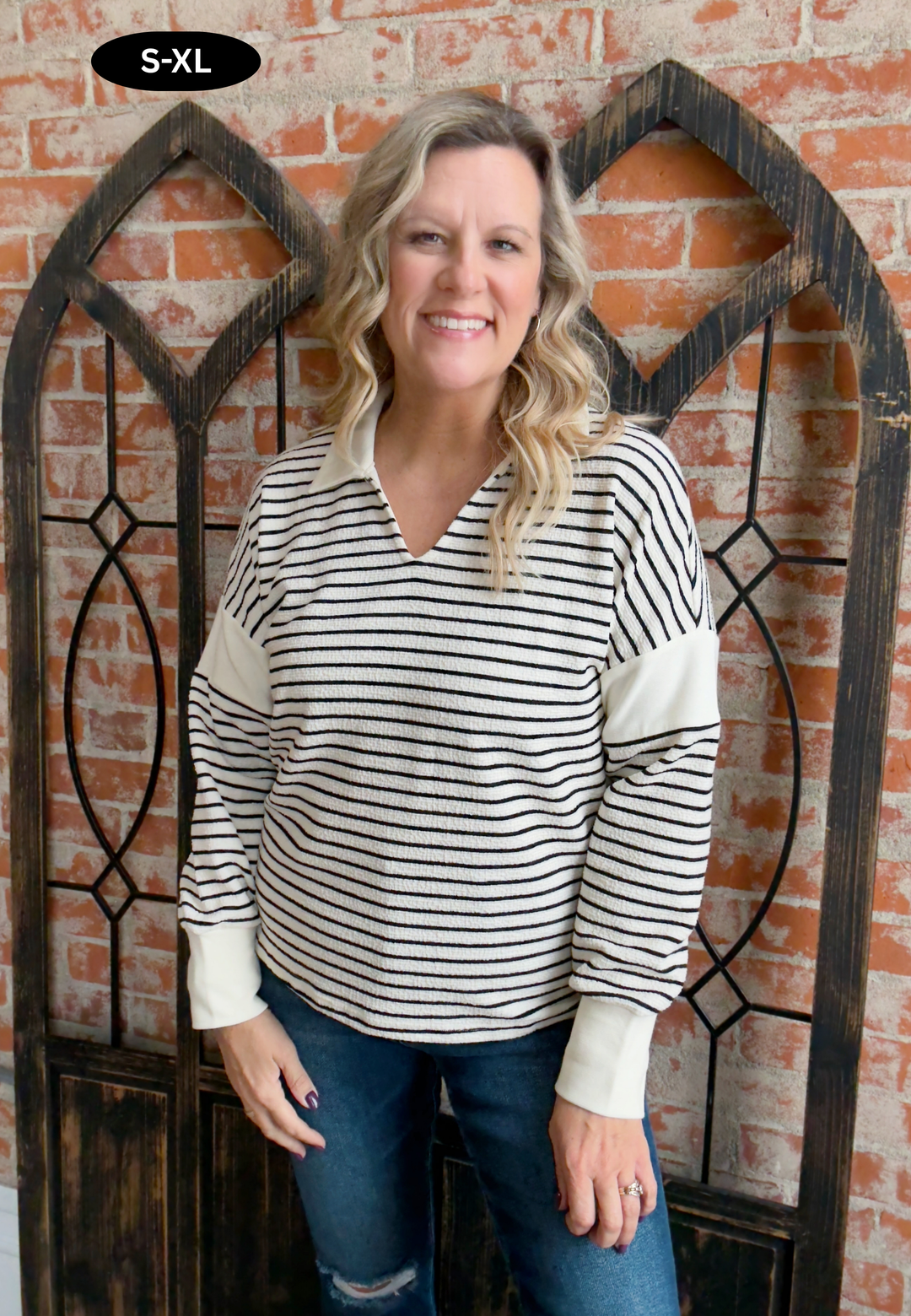 City Life Striped Collared Long Sleeve