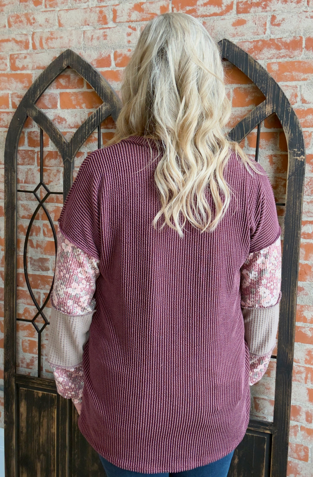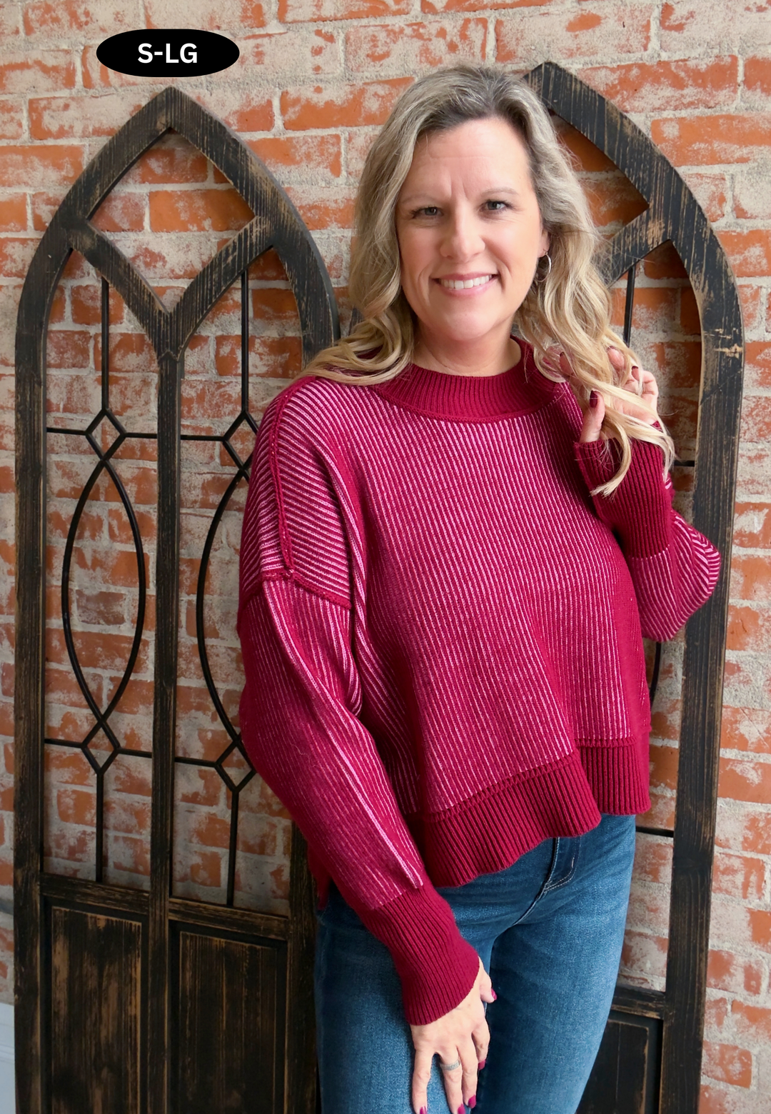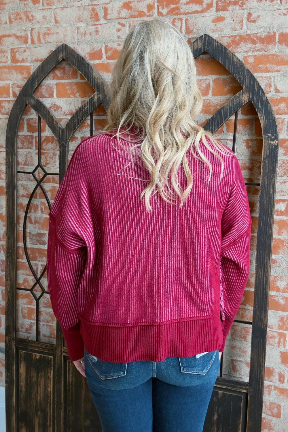 In The Silence Ribbed 2 Tone Sweater-Cabernet/Pink