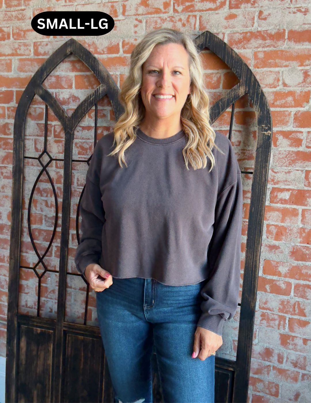 Feel Unstoppable Cropped Crewneck-Charcoal