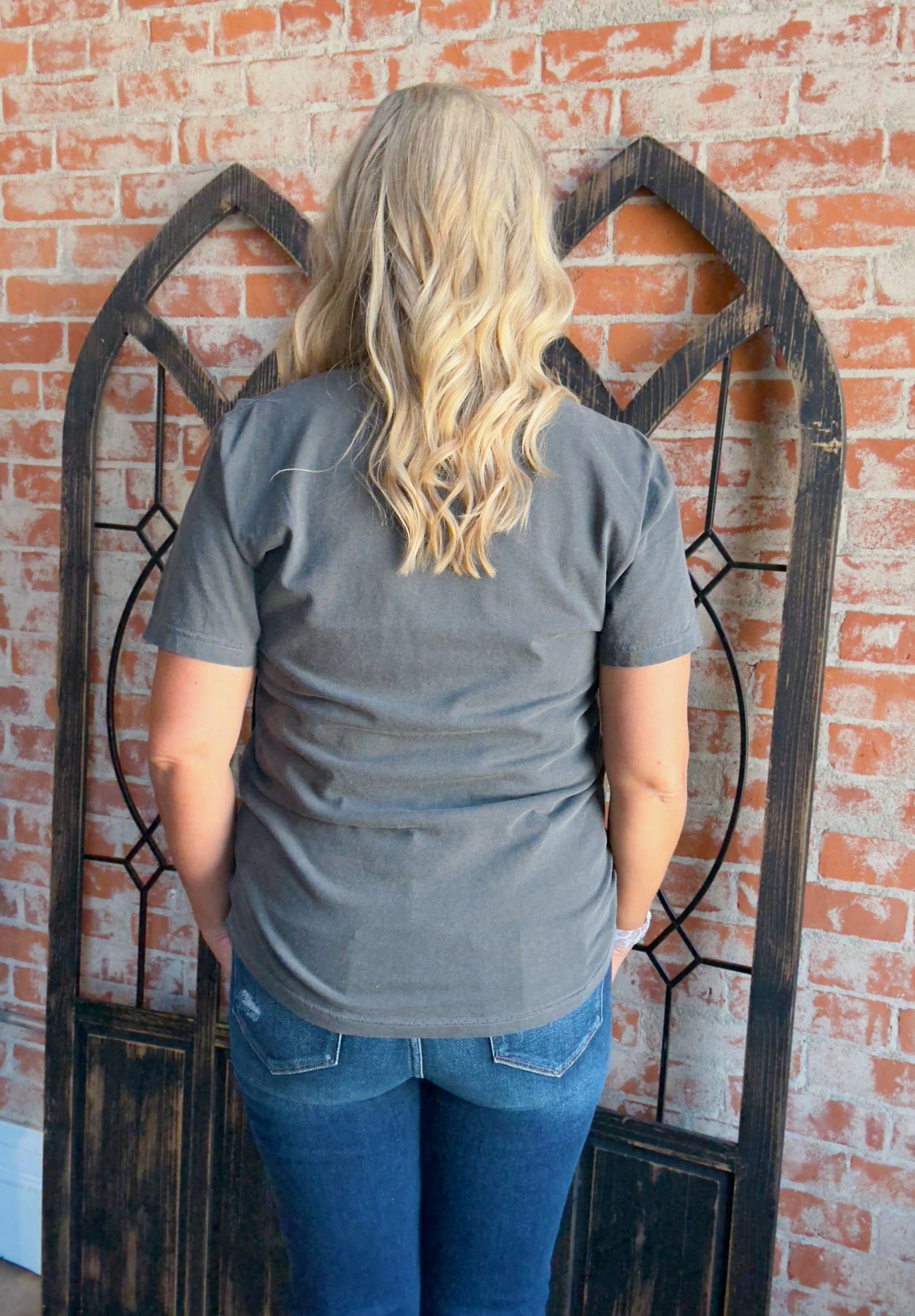 - Peppered colored bodice with light pink "I Will Praise Him In Every Season" graphis and floral/pumpkin decals