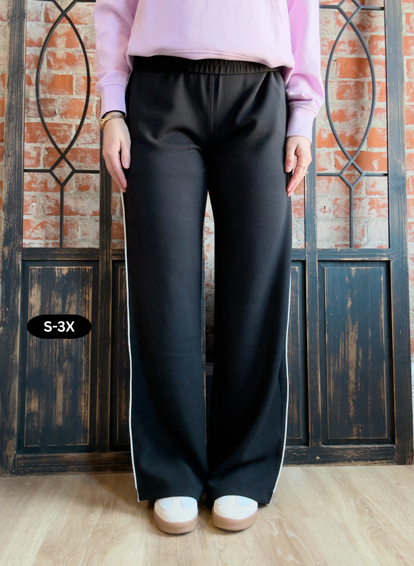 - Black in color with cream piping down the leg