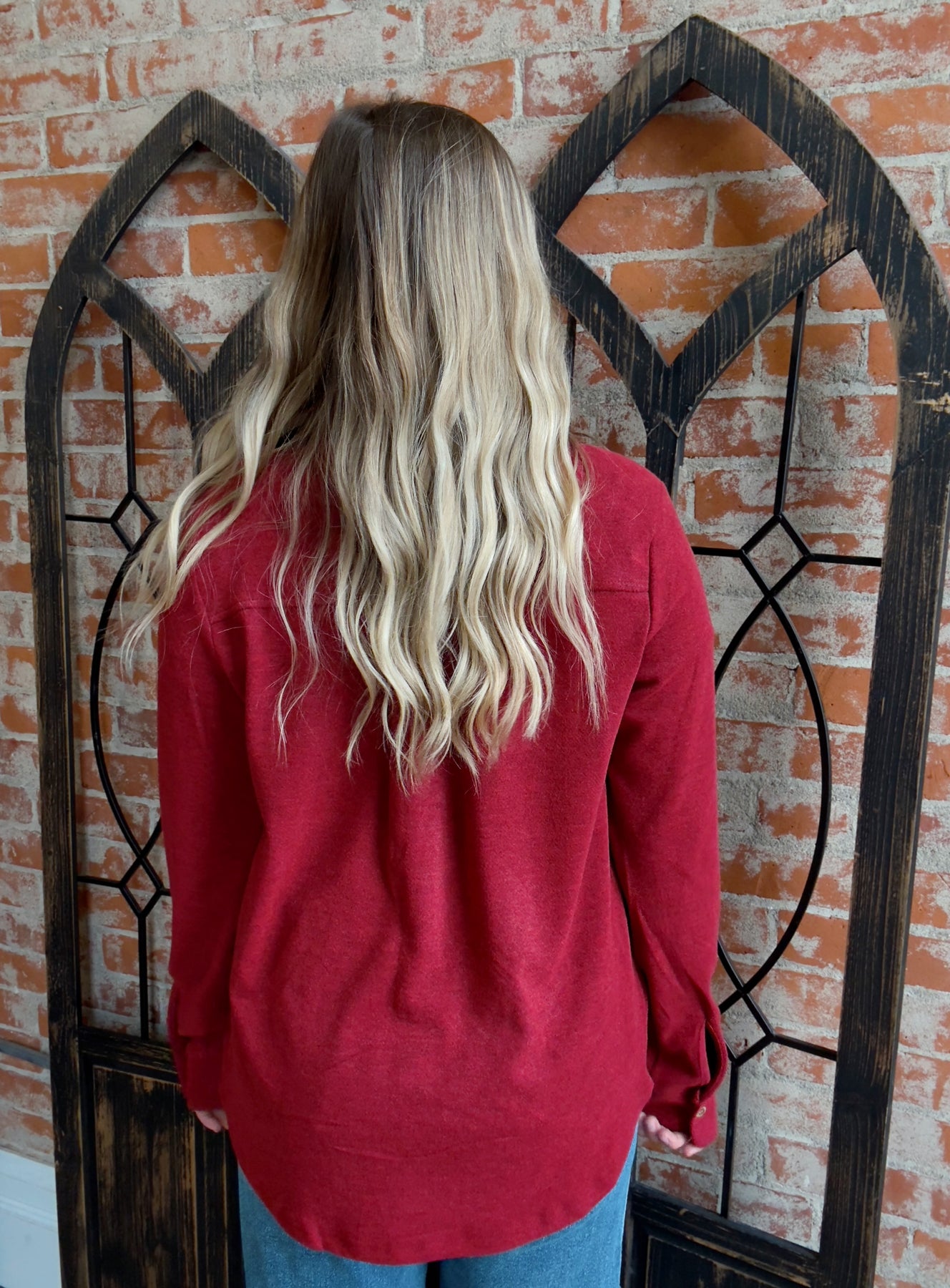 - Collared neckline with functional acrylic button down accents and breast pockets